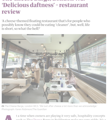 The phrase “showcasing British produce” is flung around willy-nilly on menus these days, but in The Cheese Barge’s case, it is genuinely employing and experimenting with some of the UK’s loveliest things.